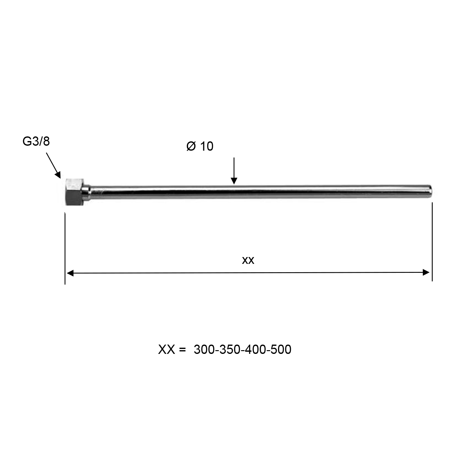 Priključek mešalne pipe F 3/8″, 40 cm, krom