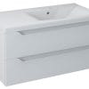 WAVE Vanity Unit 90x45x48cm, desna/bela/srebrni hrast